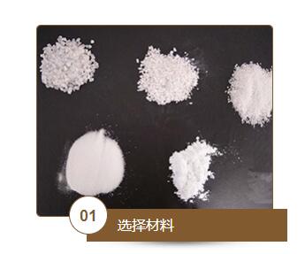 1、選擇并檢查高純硅砂,聚酯樹脂,石英石顏料。