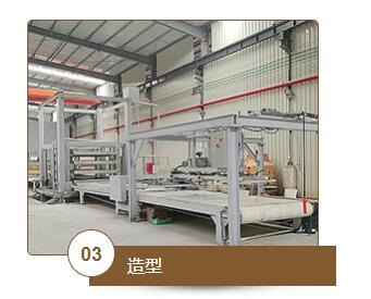4、通過在約100噸的壓力下約100秒的真空和振動過程將混合物壓實成板坯。然后移至固化窯并在85度的溫度下加熱45分鐘,這使得它們具有極強的強度和堅固性。
