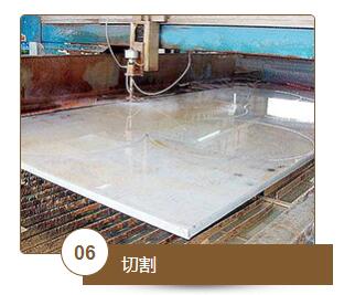 6、對于定制尺寸的板坯,將大板坯送至水刀機床切割,并通過手工拋光對邊緣進行拋光。